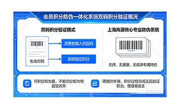 上海尚源信息技术有限公司打造的会员积分防伪一体化系统,是集网络会员积分管理与专业防伪认证于一体的数字化解决方案,依托核心防伪技术与网络技术优势,实现防伪验真、积分运营、客户管理的有效融合,广泛适用于化妆品、婴幼儿用品、乳制品、美容等多行业,同时支持促销员积分功能,为企业筑牢品控防线的同时,搭建有效的客户营销体系。